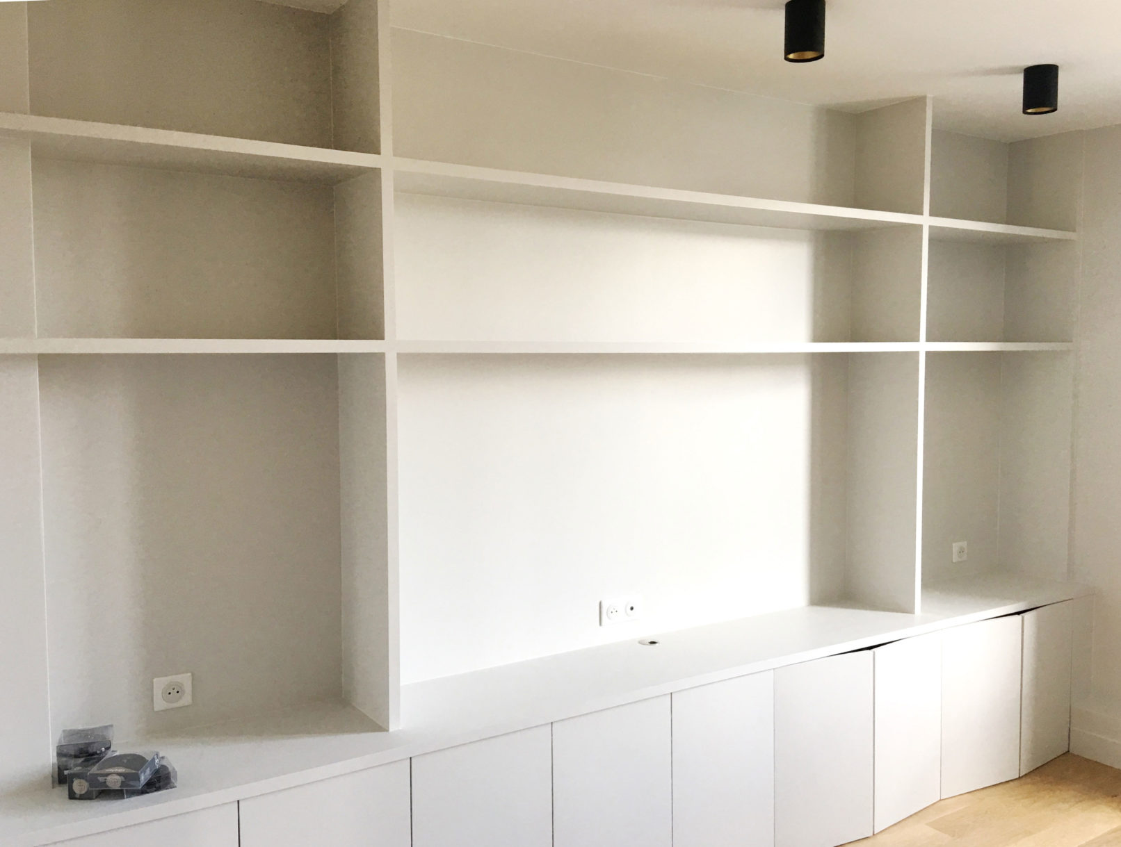 Une jolie réalisation dans ce petit appartement transformé en duplex esprit suite d’hôtel sur 2 niveaux de 2x30m2. Pour cela, les planchers des combles ont été refaits, l’ensemble des volumes ont été isolés, entièrement redessinés et agencés pour maximiser la place et la sensation de sur mesure.